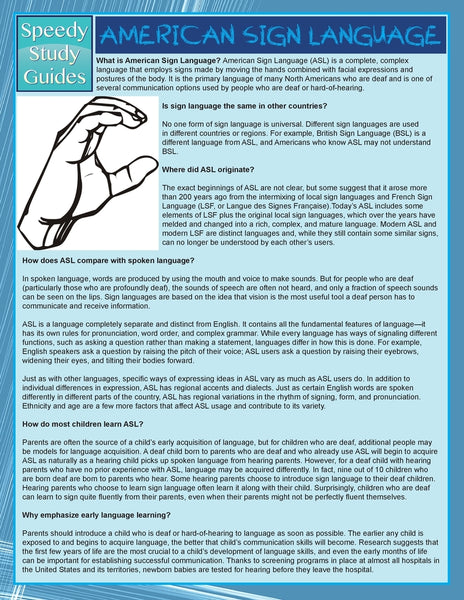 Details: An American Sign Language Guide helps someone trying to learn sign language, by allowing the person to study at their own pace and in their own time. Also, an American Sign Language Guide allows the person who is wanting to learn Sign Language to study anywhere that is convenient for them. This could be; a classroom, the person's residence, the library, or any other place that the person feels comfortable reading the guide and practicing the techniques the guide teaches.