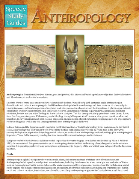 Details: A study guide can be very beneficial for any students taking a class in Anthropology. The best purchase for students interested in this subject area will break down the different classifications and terminology found in this engaging area of study. The main thing to learn when taking an Anthropology class is the importance of having a very well written study guide.