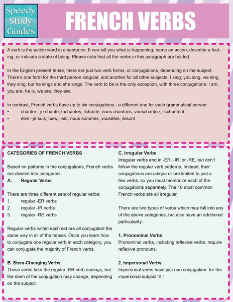 Details: As we all know French is the language of love, and there are some who either quite fluent in speaking this romantic language or can't quite speak it at all. With French verbs, it's apart of speech in which the language, depending on which tense the conversation is, can be tricky. With time and practice, the language of love is easily at your fingertips. By learning French, not only you gain an extra language to speak, but a person would learn different cultures too. In addition, by learning French, a person can learn about their own language as well. French is not only a romantic language, but an informative language too.
