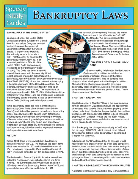 Details: A bankruptcy laws study guide helps because it will explain what you need to know before you file. You will be able to determine whether or not you should even file for bankruptcy. If you do not have anything that the creditors can take from you, like a car, you may not need to even file for bankruptcy. On the other hand, if you do have personal property that the creditors can take, this guide will let you know under what circumstances you may be able to keep it with bankruptcy. Also, it will explain bankruptcy laws in your state.