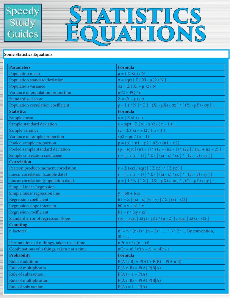 Statistics Equations (Speedy Study Guides: Academic)