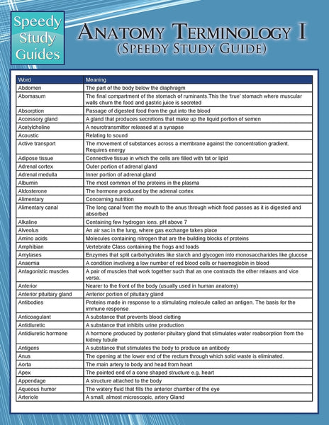 Details: When studying a field of medicine; albeit for general medicine, massage or even reflexology, it is beneficial for a student to possess an anatomy terminology study guide. Students are able to utilize this study guide by quickly referring to it for any terminology they are not familiar with and therefore be able to remember it for that point on. Having a study guide ensures that the student can implement the new terminology into their study routine on a regular basis.