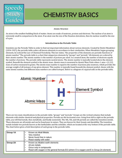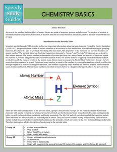 Details: A study guide of chemistry basics would give students bite-sized chunks of information on a complex subject, making the task of learning it easier and more enjoyable. Study guides present detailed information on a topic in a compact and simplistic way, which helps the student grasp more of what they are being taught. Also, the visual aids that usually are found in study guides can be very effective in keeping the attention of the child as well as embedding the material in their memory.