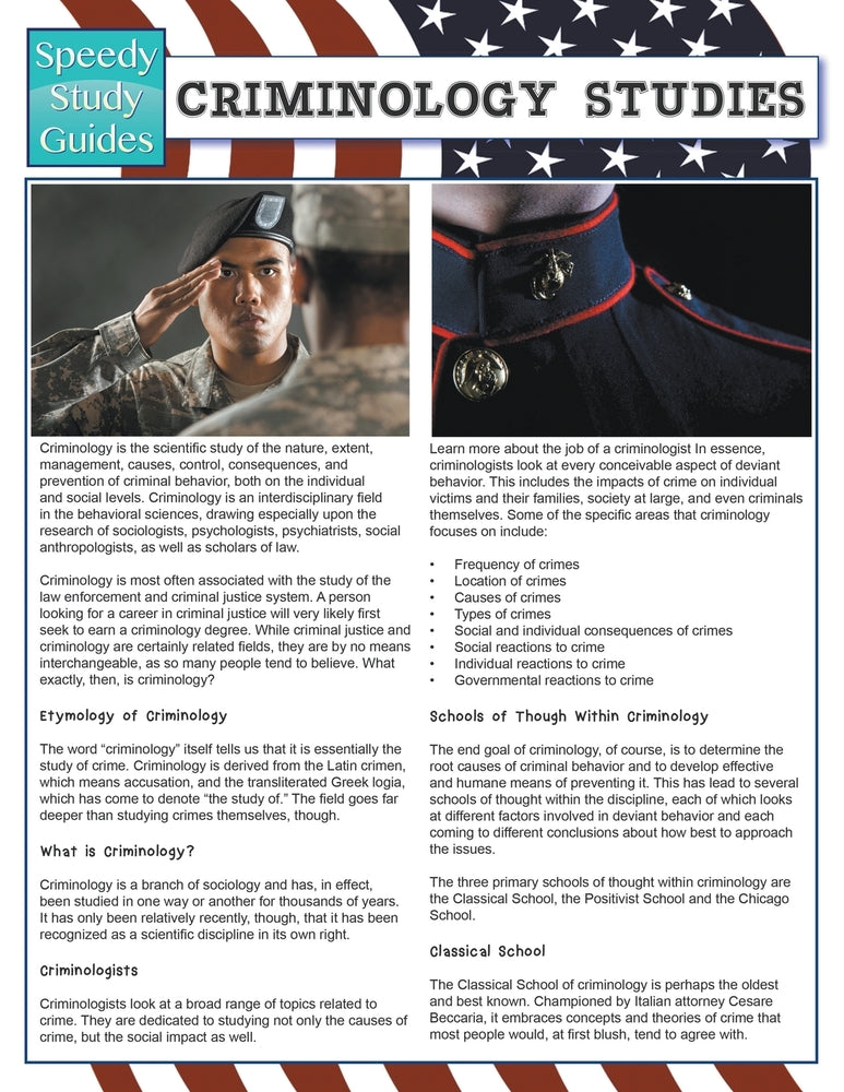 Details: Let's talk about criminology. This quick study guide brilliantly explains the different facts about criminology. The way general information is broken down into categories encourages easy reading and better absorption of facts. Information presented in this guide include career options, CV enhancement, and criminology theories and so on. Be sure to grab a copy today.