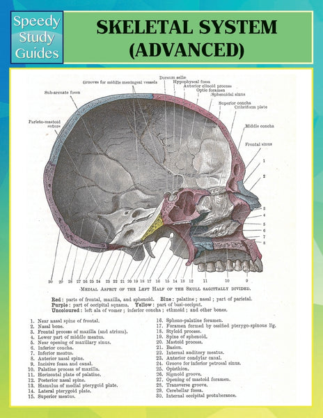 Details: The human skeletal system consists of 206 bones. In addition to the obvious functions of providing a framework for the body which both supports and protects other tissues, it also has metabolic functions like blood cell production, storage of calcium and regulation of the endocrine system. The various functions are surprisingly complex and detailed, plus the list of individual bones is quite long, thus making a pamphlet about this system an indispensable quick reference for any serious student of biology.